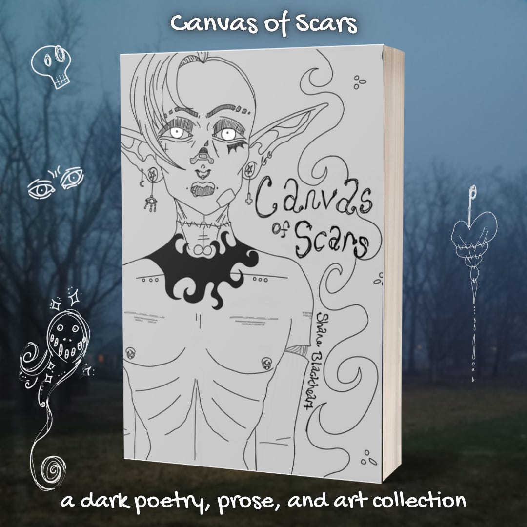 Today we’ve got an author interview with Shane Blackheart. Their new book, Canvas of Scars, is a collection of poetry, short prose, and art following a number of dark themes.